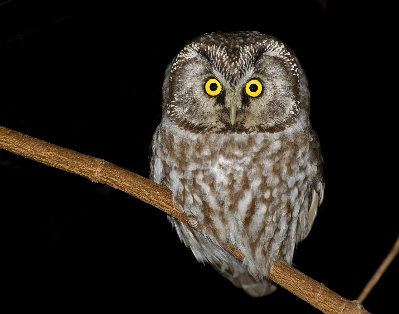 2. Глаза сов не являются «глазными яблоками» в привычном нам понимании. Их глаза имеют трубчатую форму и абсолютно неподвижны. Такое бинокулярное зрение позволяет полностью сосредоточиться на добыче и усиливает восприятие глубины пространства. Но поскольку сова не может скосить глаза в сторону, ей приходится компенсировать неподвижность глаз подвижностью шеи и головы. Глаза сов занимают до 5% массы тела (у человека — 0,02%) и видят в 50 раз лучше ночью, чем человеческие.