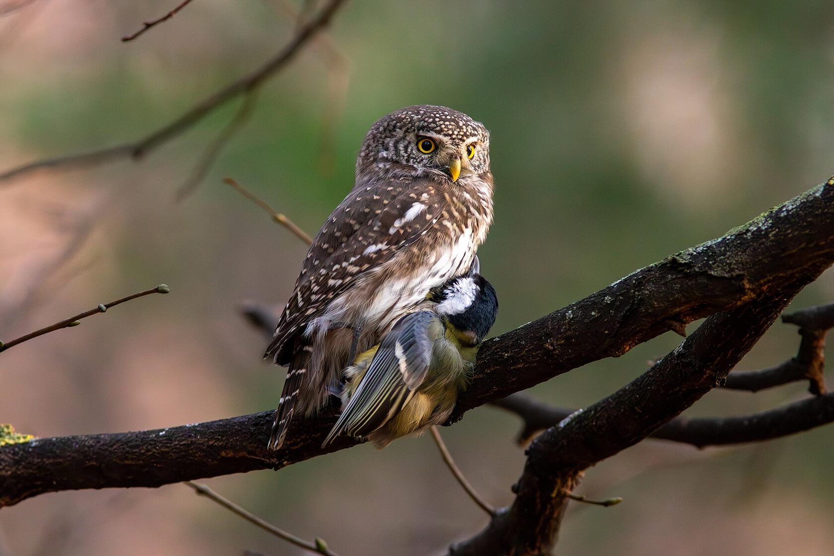 5. Совы охотятся на сов. Виргинский филин — главный хищник, охотящийся на более мелкую пёструю неясыть.