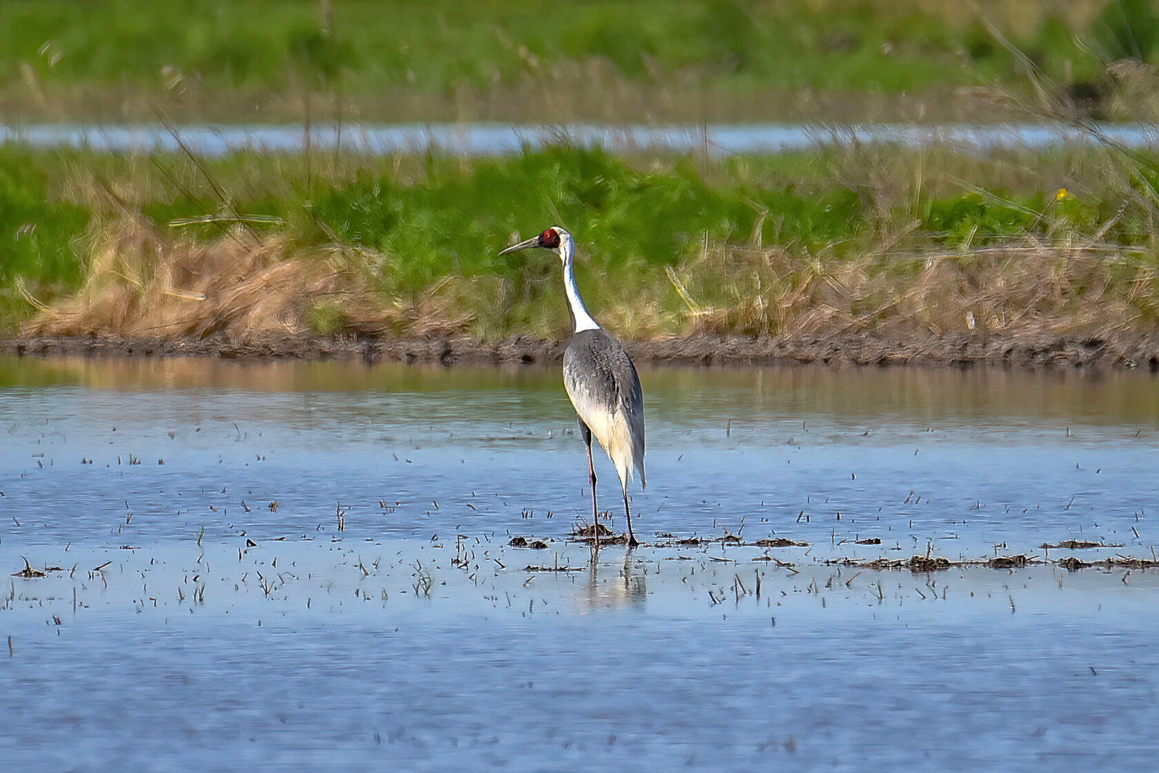 Следующей нашей остановкой должен был стать визит центр Земли Леопарда, недалеко от этого места находилась локация, где каждый год гнездится ещё один эксклюзив – уссурийский зуёк. Приехав на эту точку, мы первым делом обнаружили белолобого гуся, которого удалось крупно поснимать, а ещё заметили белокрылую цаплю, до этого я даже не знала о существовании такой. Уссурийского зуйка мы тоже нашли, но позировать, как гусь, он не захотел, однако без фото я не осталась.