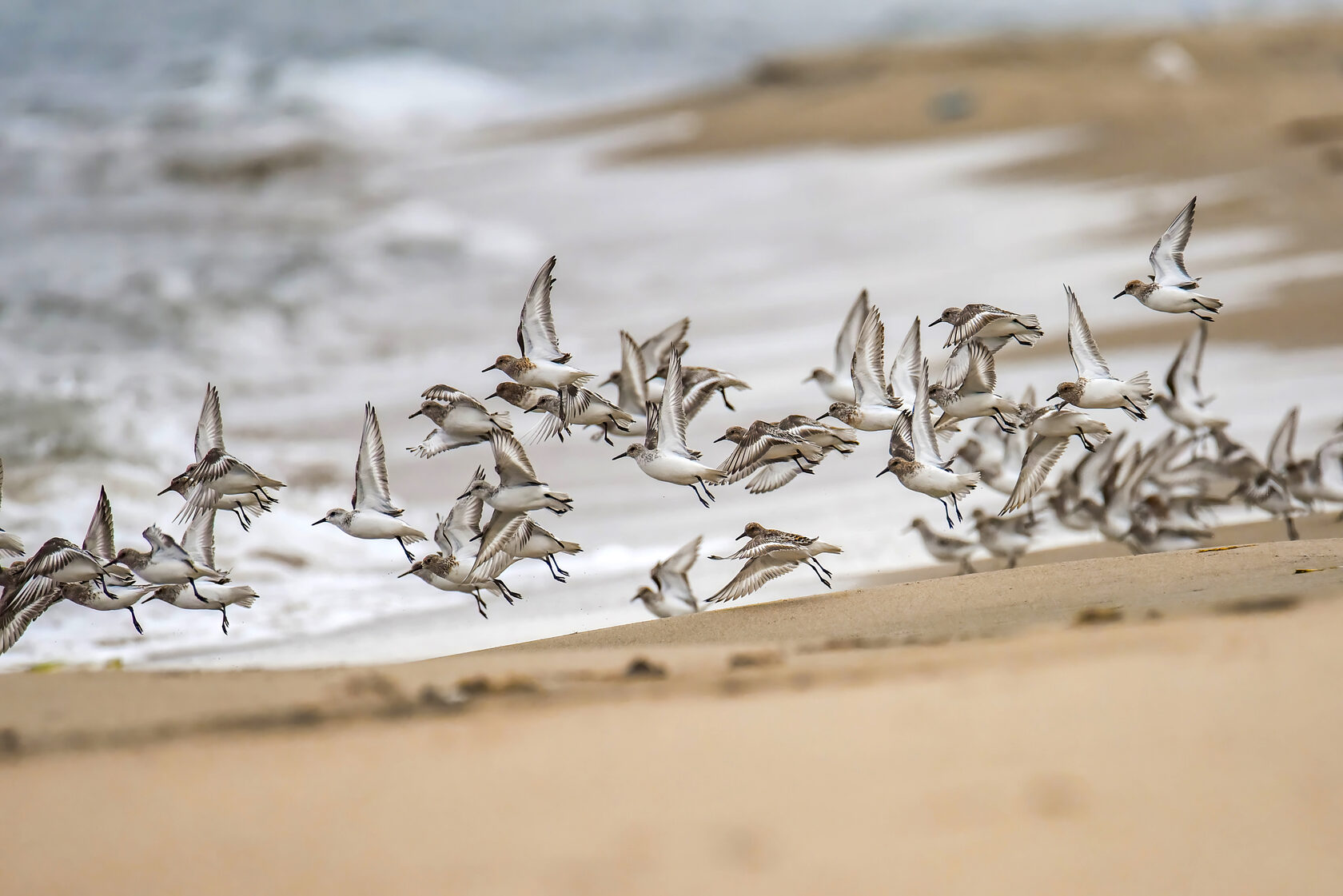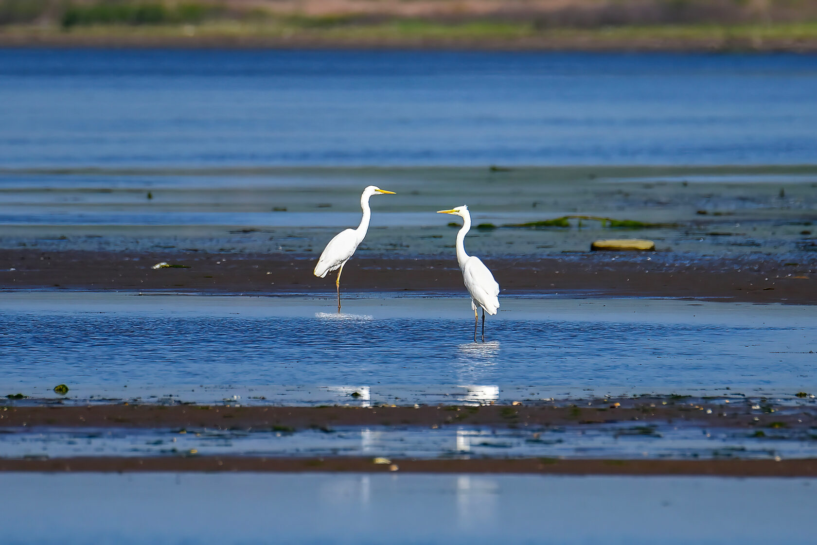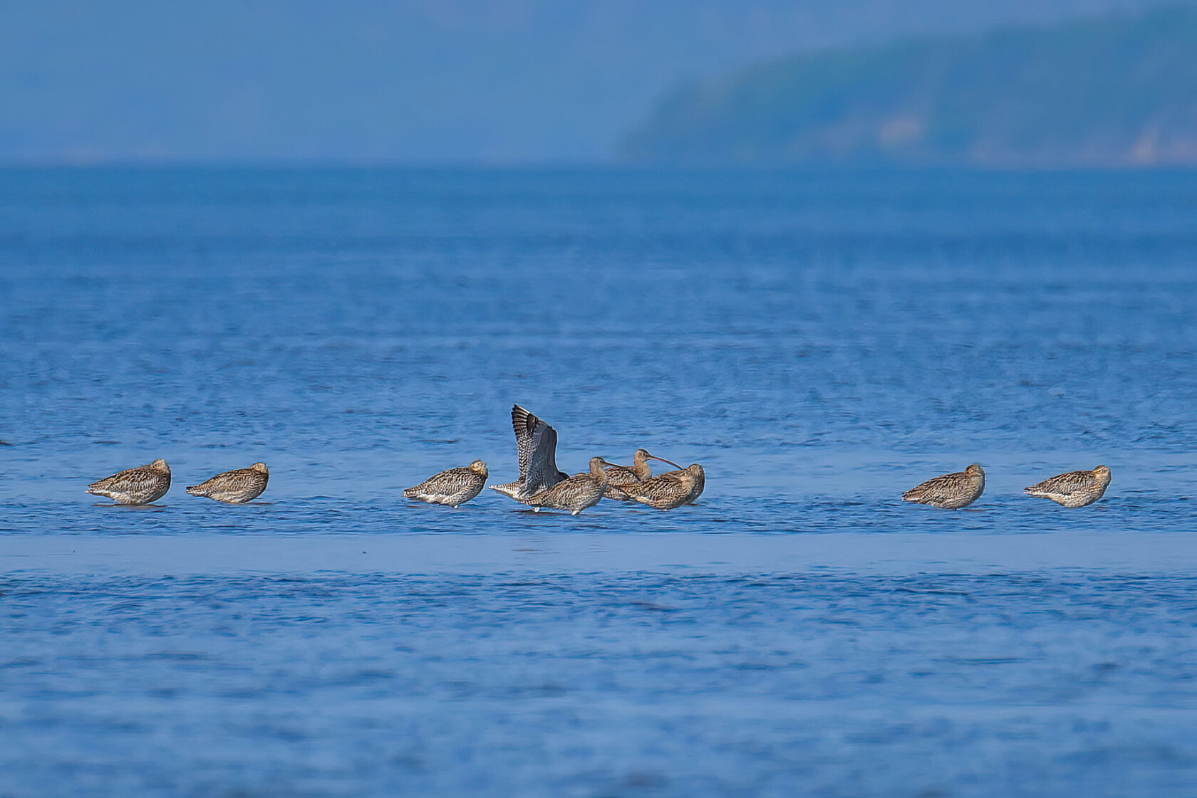 Погода продолжала радовать. Но погодой в Приморье лучше не обольщаться, об этом я узнала позже. В поисках куликов мы вышли на побережье, но их как будто и след простыл. Зато вдалеке виднелись Дальневосточные кроншнепы, а на фоне синего моря выделялись белые цапли.