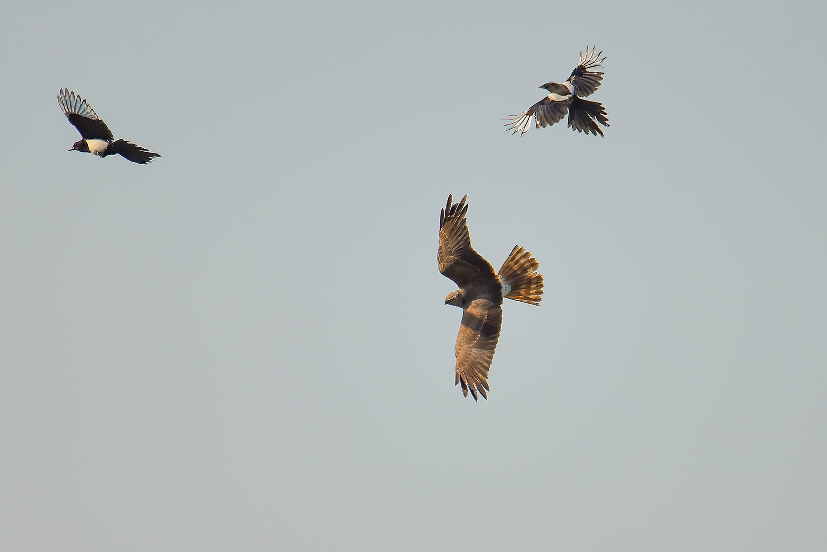 Помимо журавлей и аистов, нас радовали цапли, кулики и всякая мелкая птичь, а вот хищников было не так много. Видимо, всех распугали восточные сороки, рьяно защищающие гнёзда.