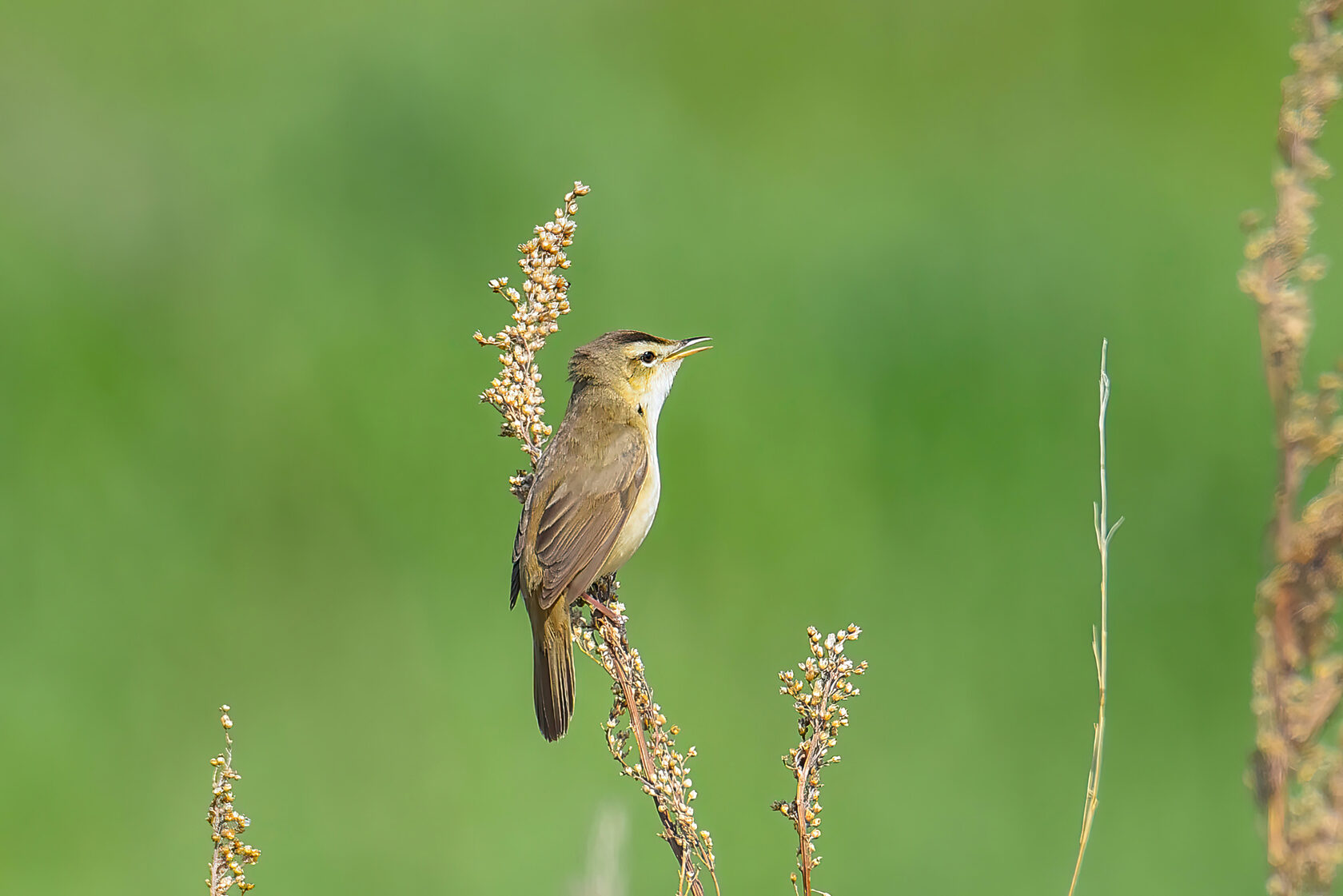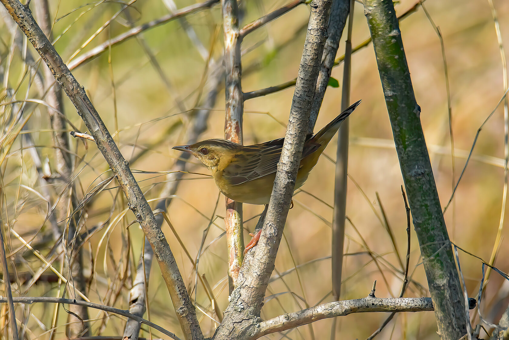 Помимо куликов, были и другие целевые виды, например, рыжешейная овсянка, а также главный сюрприз — неуловимый певчий сверчок, которого нашёл Слава и радостно позвал всех к заветному кусту. Только вот сфоткать его среди веток было ещё той задачкой.